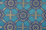 Парча НИКОМЕДИЯ, белая + голубая с серебром, с желтой окантовкой, шир. 155 см 2 370 руб. / м.
